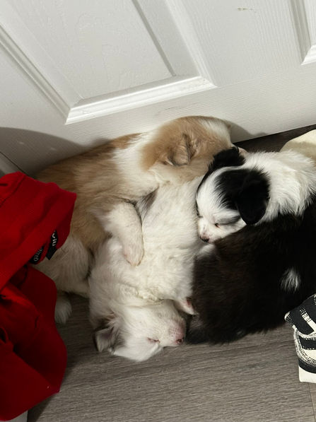 are Panda & Mary Lou and we are excited to meet you. Mary is an all white Maltese and our daddy "Panda" is a designer Pomsky.